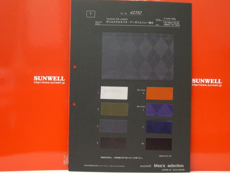 Sunwell功能服料是以化纖為主要材料的品牌,交織緊密的外套、夾克面料。經過各類的功能性處理,如防水、防皺、防火、防臭、防紫外線和各類的塗層處理。能為業界提供顏色,品種多樣化的功能面料 。